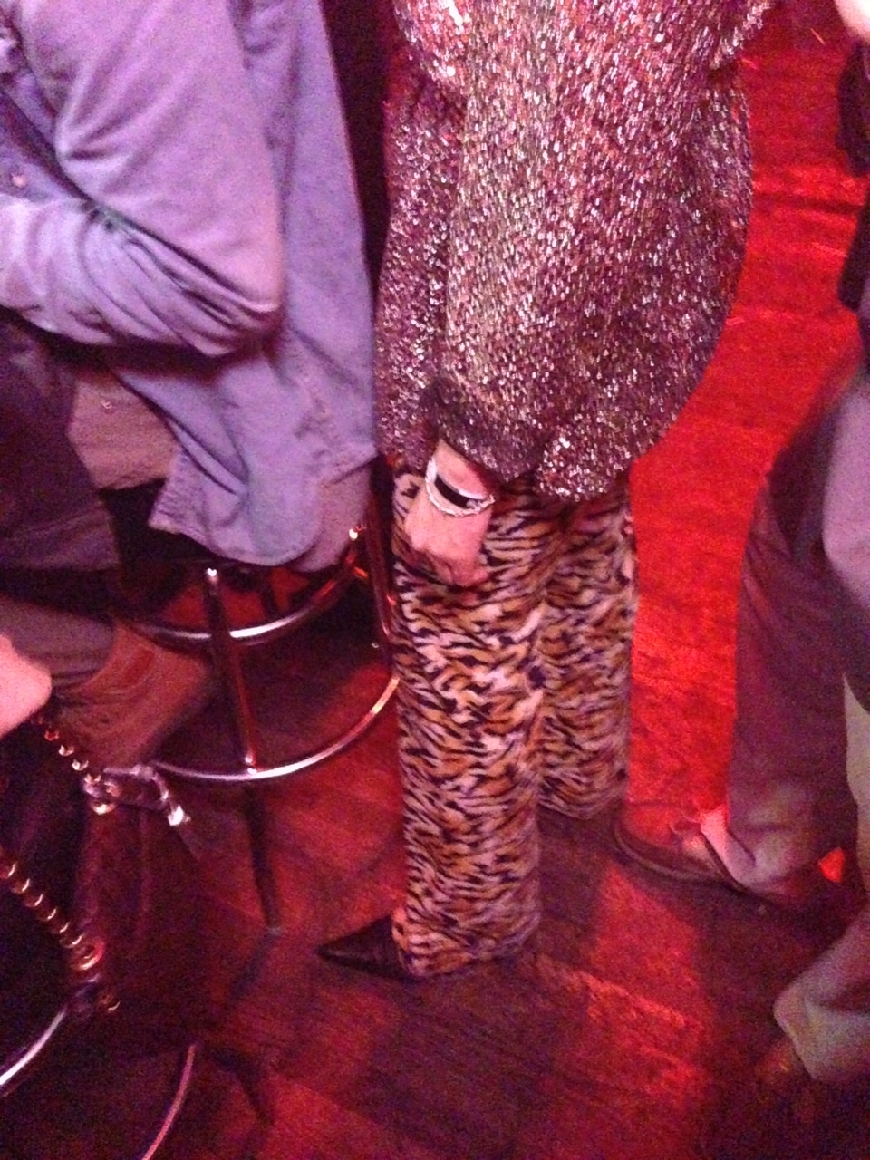 Not this lady. She wears black hose, knee-high, plastic, black boots, a black shirt unbuttoned low enough to get a healthy dose of “the ladies”, and a black skirt so tight and short that I wouldn’t want to be the one sitting in the airplane seat after her. And the craziest thing is that when she turned around, she was not young. I’m estimating 45, but she could also be a really hard-living 30 year-old. I am terrible at guessing ages.