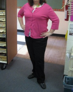 There’s nothing inherently wrong with this outfit. There’s nothing particularly great about it, but there’s nothing super-terrible about it either. The difference is that this nice lady is not wearing her cardigan and casual black pants while she is representing clients for pay in front of an elected judicial official. And therein lies my point.